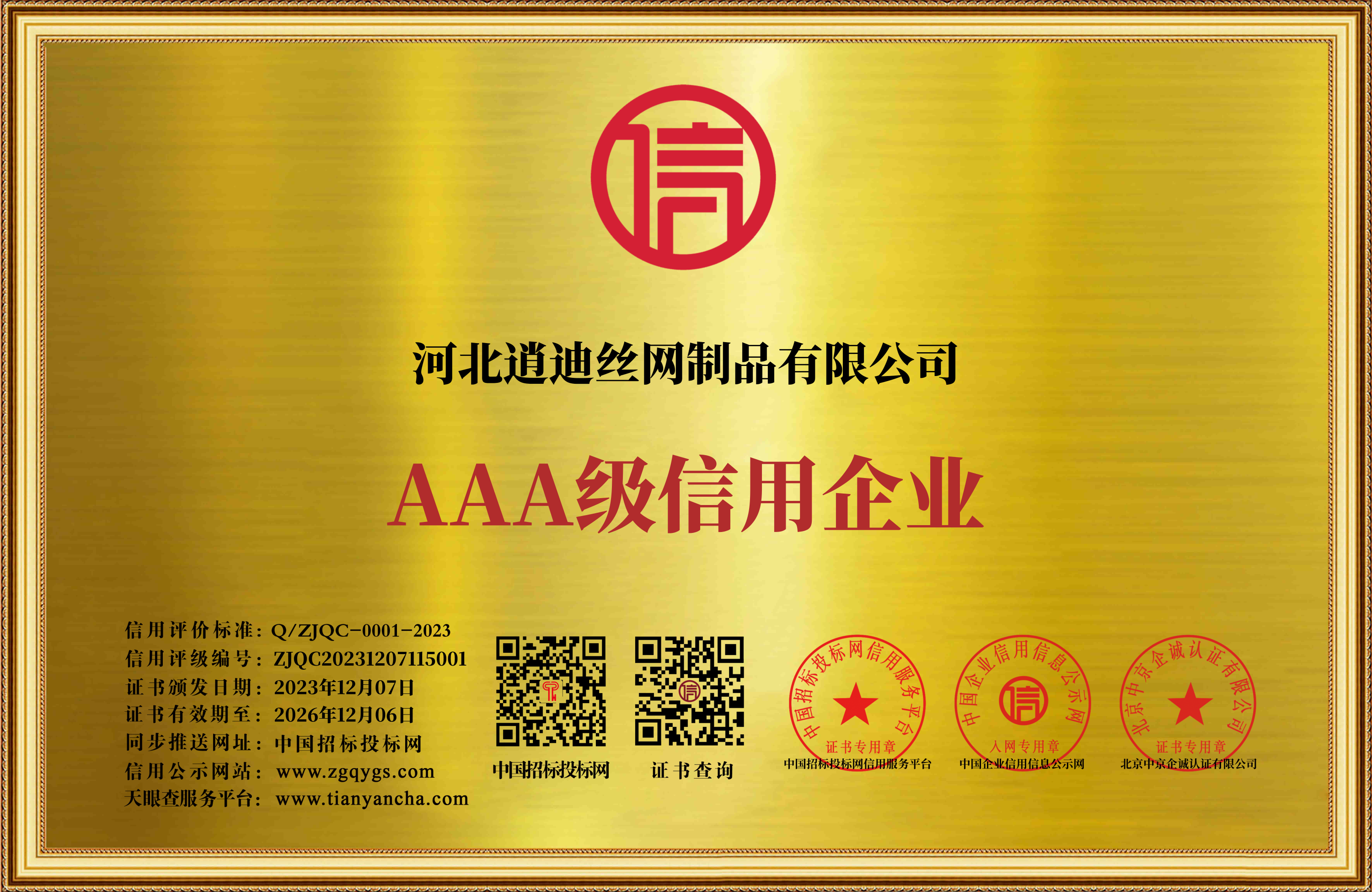 河北道迪絲網制品有限公司 注意:有效期為2026年12月06日過期作廢